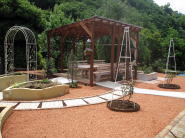 パーゴラの脇には、L型のハーブ花壇を設置しました。