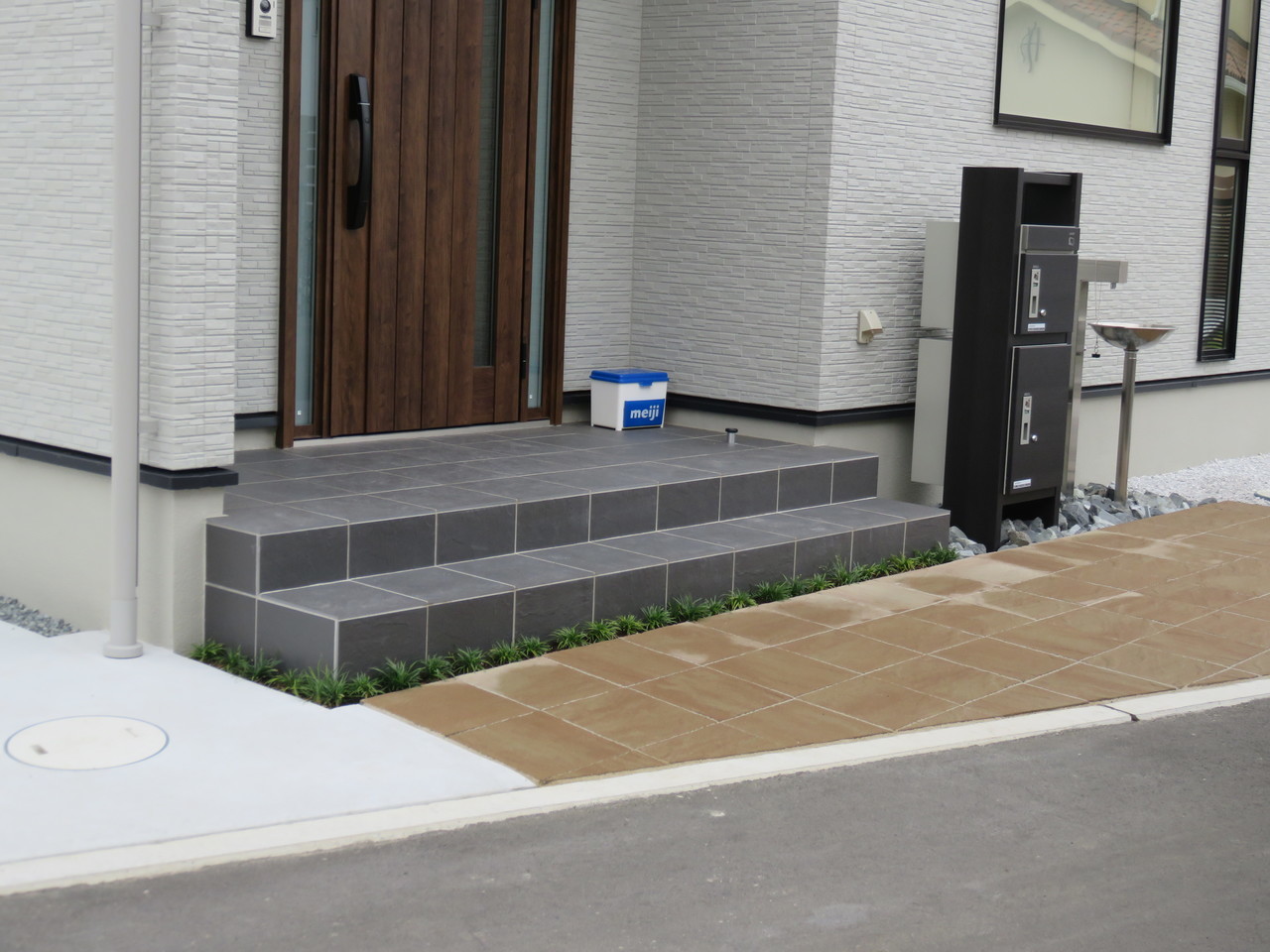 栗石(ぐりいし)を敷いてアクセントをつけました。